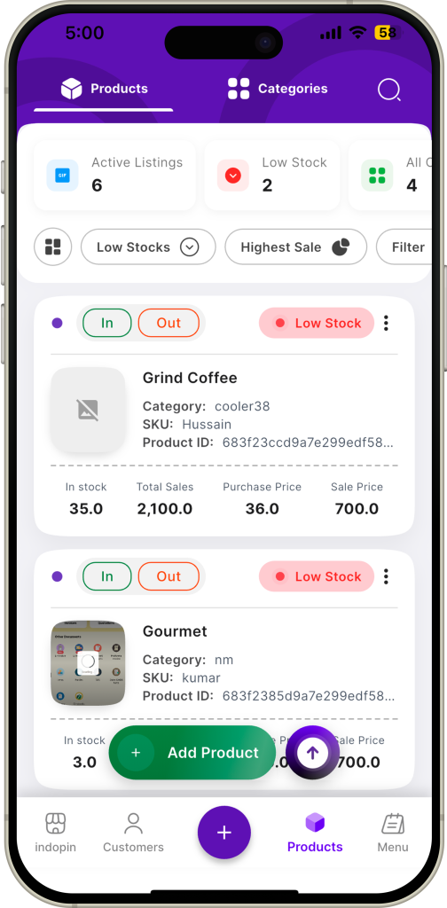 Stay in control of your stock, always.Track, update, and manage items in real time.